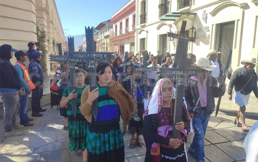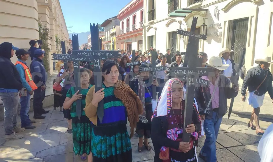 En algunas mantas escribieron: “Queremos paz con justicia y dignidad”, “Hermanos del crimen organizado, escuchen la voz de Dios que les dice: no mates a tu hermano”, “Jtatik Samuel, caminante en el corazón de los pueblos” y “Exigimos a los tres niveles de gobierno alto al alcoholismo, alto a la delincuencia organizada”.