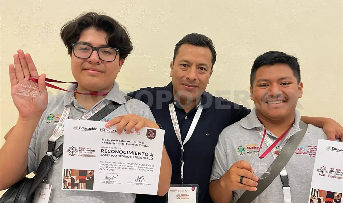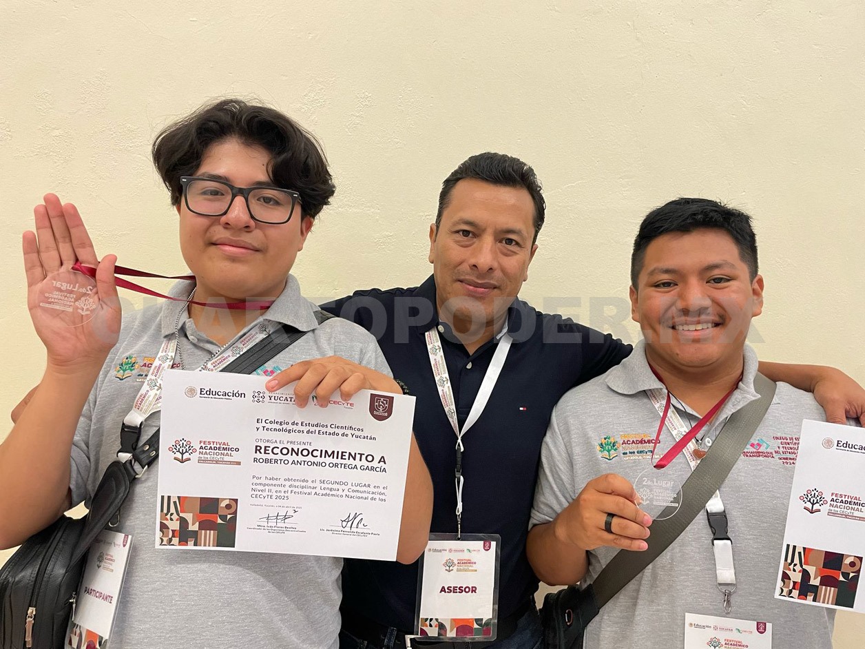 El Colegio de Estudios Científicos y Tecnológicos del Estado de Chiapas (Cecytech) celebra el logro de dos estudiantes del Plantel 08 La Trinitaria, quienes obtuvieron el segundo lugar nacional en el Festival Nacional Académico 2025, realizado en la ciudad de Valladolid, Yucatán.
