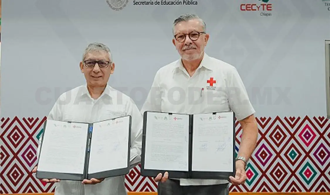 El Colegio de Estudios Científicos y Tecnológicos del Estado de Chiapas (Cecytech) y la Cruz Roja Mexicana (CRM) delegación Chiapas, firmaron un convenio de colaboración interinstitucional que permitirá a las y los estudiantes realizar su servicio social y prácticas profesionales en la benemérita institución, brindándoles experiencia en un entorno real y fomentando valores como la solidaridad y el compromiso con la comunidad.