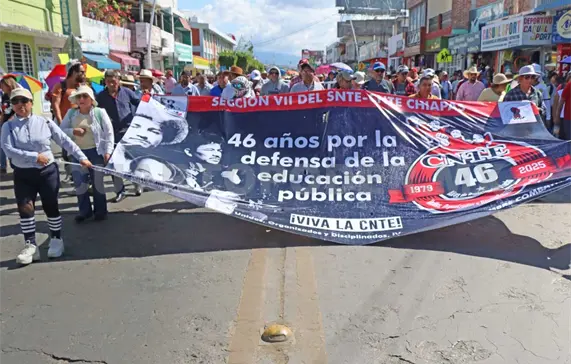 Durante la marcha por el 46 aniversario de la Coordinadora Nacional de los Trabajadores de la Educación (CNTE), el secretario general de la Sección 7 del SNTE, Isael González Vázquez, reiteró que probablemente retomen la huelga nacional del magisterio federalizado en el marco del Mundial 2026, del que México es una de las tres sedes.