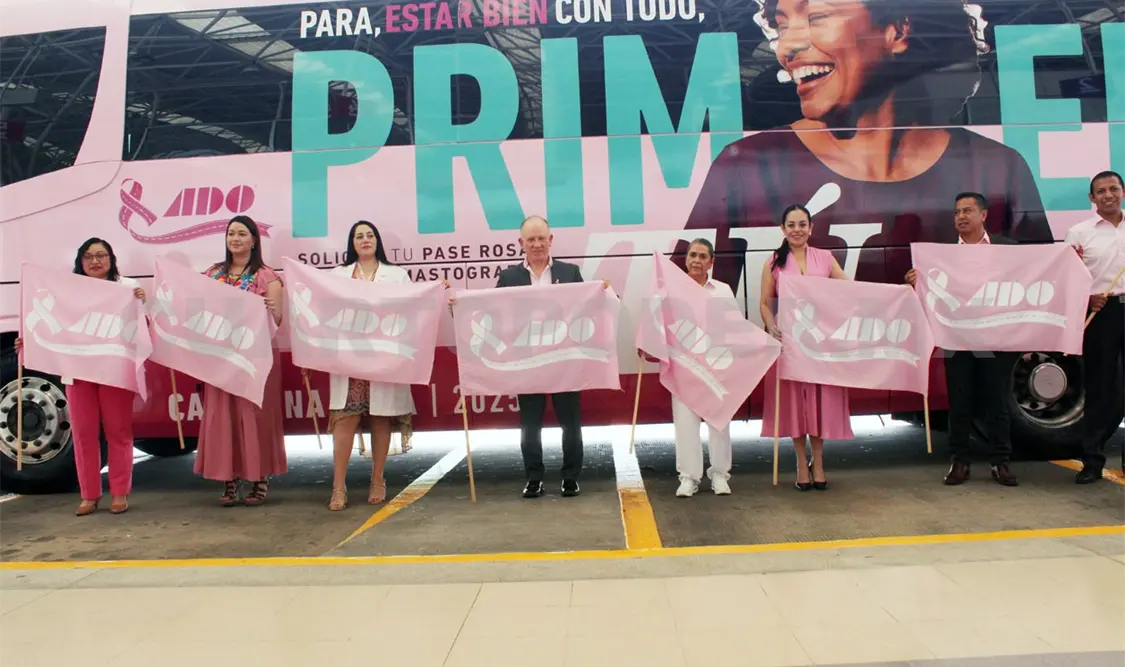 Este 16 de octubre en la terminal ADO de Tuxtla Gutiérrez, la empresa de transporte terrestre dio el banderazo de salida a la Caravana Rosa 2025, una iniciativa que durante 14 años ha impulsado la prevención y atención médica gratuita a miles de mujeres en el país. En esta edición, se aumentará un 14 por ciento el número de servicios, ofreciendo 150 mastografías gratuitas a usuarias.
