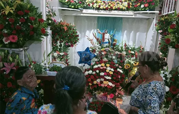 En el acto no faltó cientos de veladoras en la capilla, así como los adornos florales.