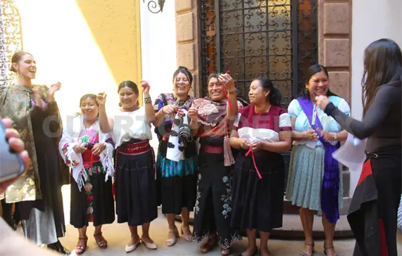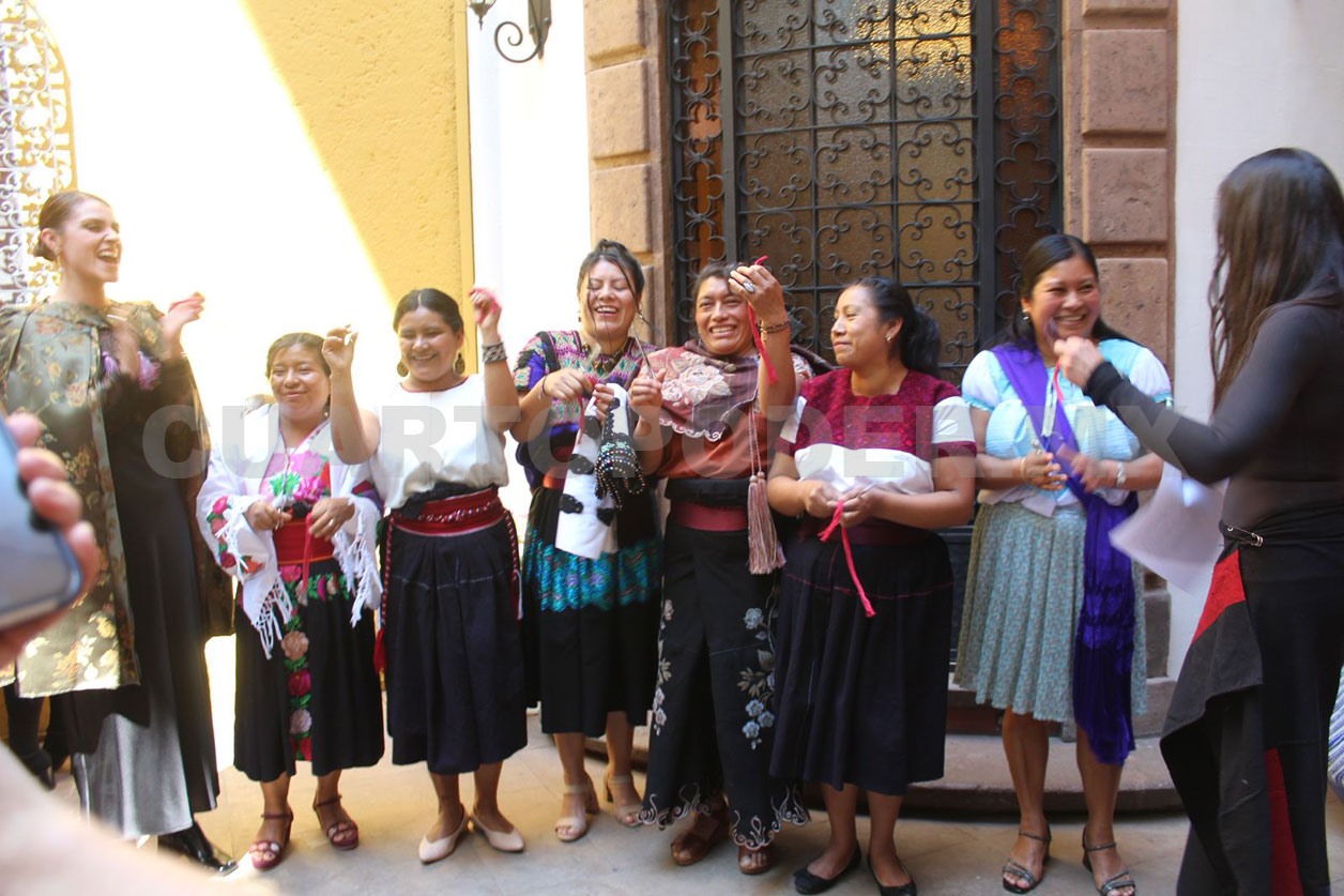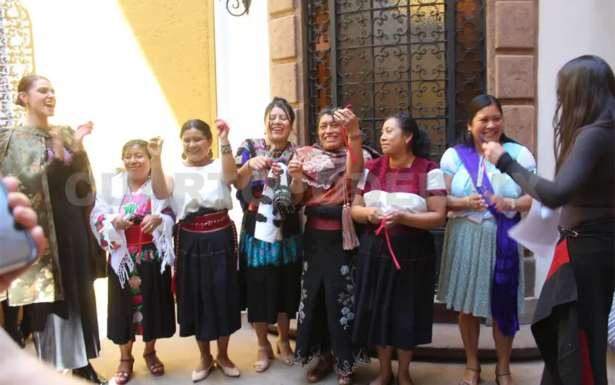 Participaron en la presentación: Juana López Díaz (telar de cintura) y Eloisa Ara (bordadora), co-propietarias de Juxta Nation; Tania Gómez, de Dos Tierras (artesana bordadora); María Gómez, de NGO Impacto (tejido en telar de cintura y brocado); Margarita Espinoza, co-propietarias de Juxta Nation (bordadora); y Margarita López, de Kip Tik (artesana tejedora). Todas ellas representan la fuerza viva de las tradiciones textiles de los Altos de Chiapas.