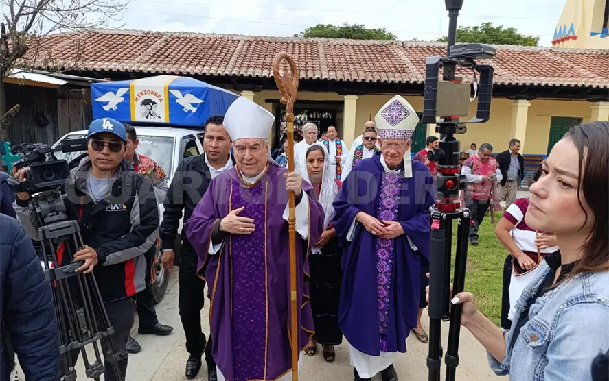 A las nueve y media de este lunes, el féretro fue llevado frente al templo de San Andrés para la celebración de una misa de cuerpo presente presidida por el obispo de San Cristóbal, Rodrigo Aguilar Martínez y por Arizmendi Esquivel.