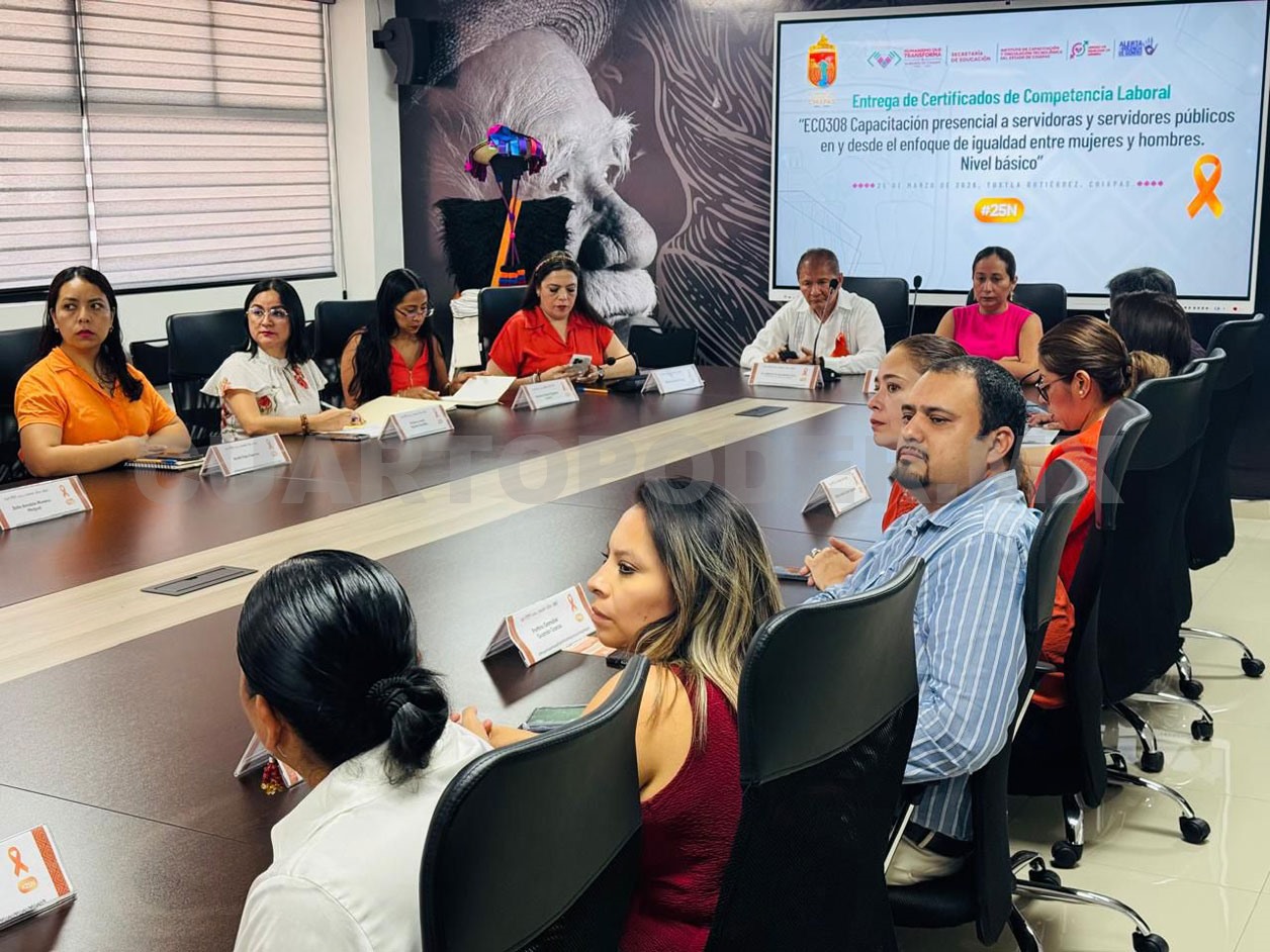 Como parte de una estrategia continua de prevención y fortalecimiento institucional, trabajadoras y trabajadores de la Secretaría de Educación (SE), bajo el liderazgo de Roger Mandujano Ayala, recibieron la certificación de competencia laboral EC0308, otorgada por el Instituto de Capacitación y Vinculación Tecnológica de Chiapas (Icatech).