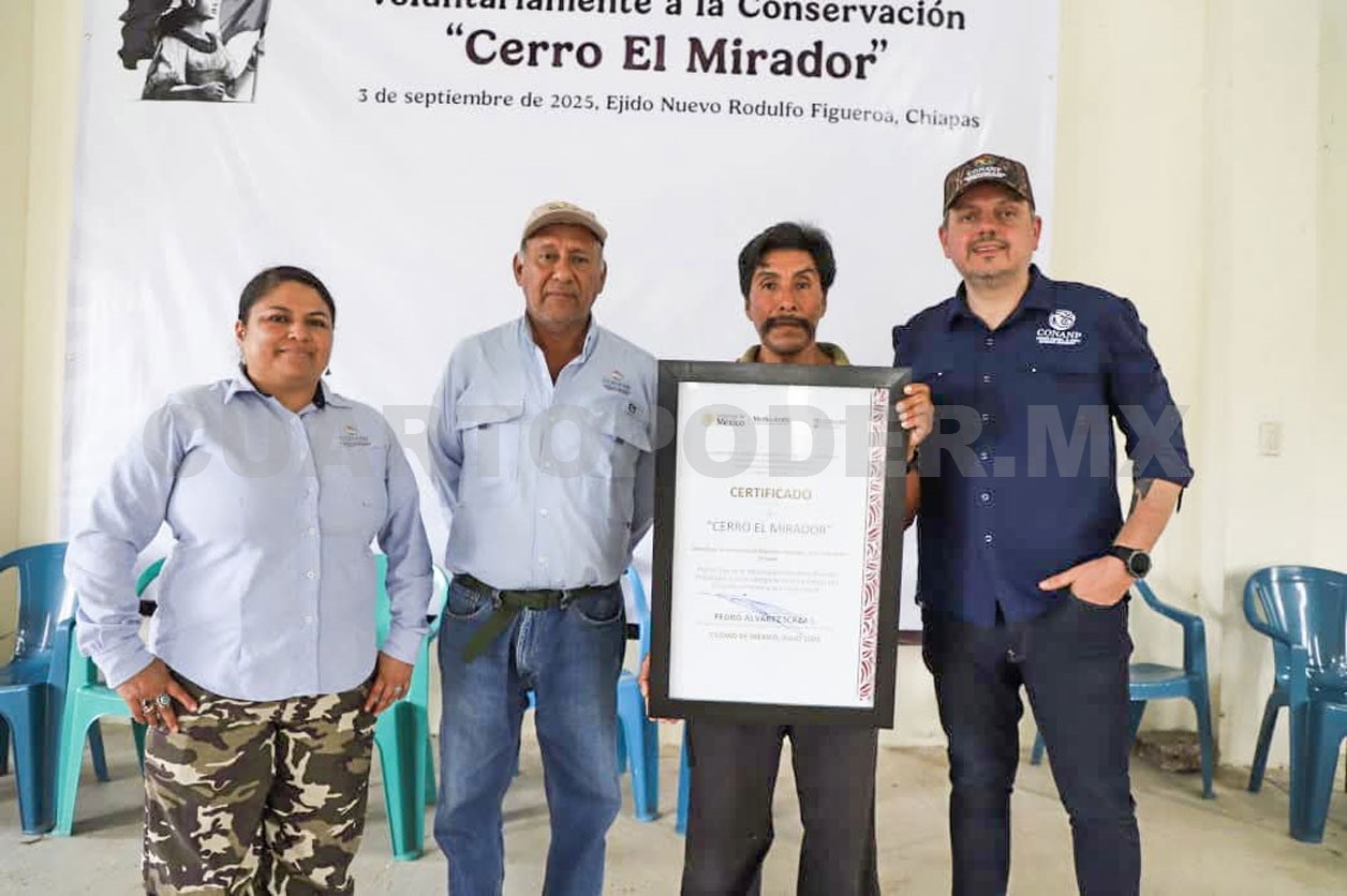En el marco de la Semana Nacional por la Conservación, la Comisión Nacional de Áreas Naturales Protegidas (Conanp) hizo entrega formal del certificado que acredita al predio “Cerro El Mirador” como una Área Destinada Voluntariamente a la Conservación (ADVC).