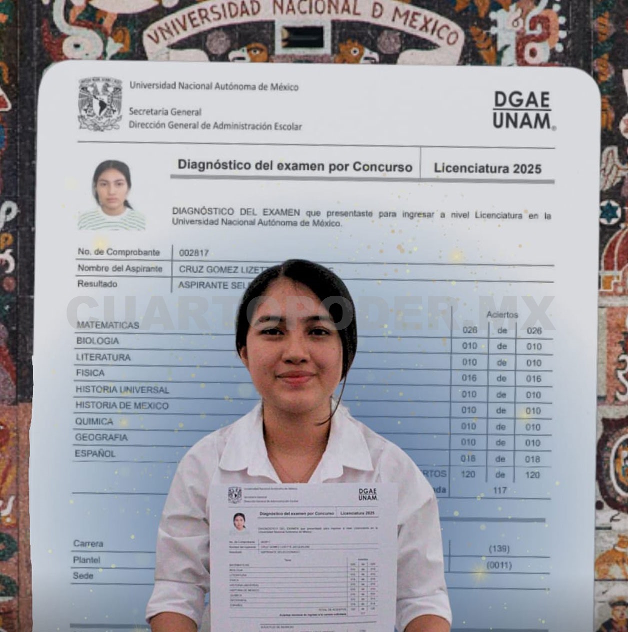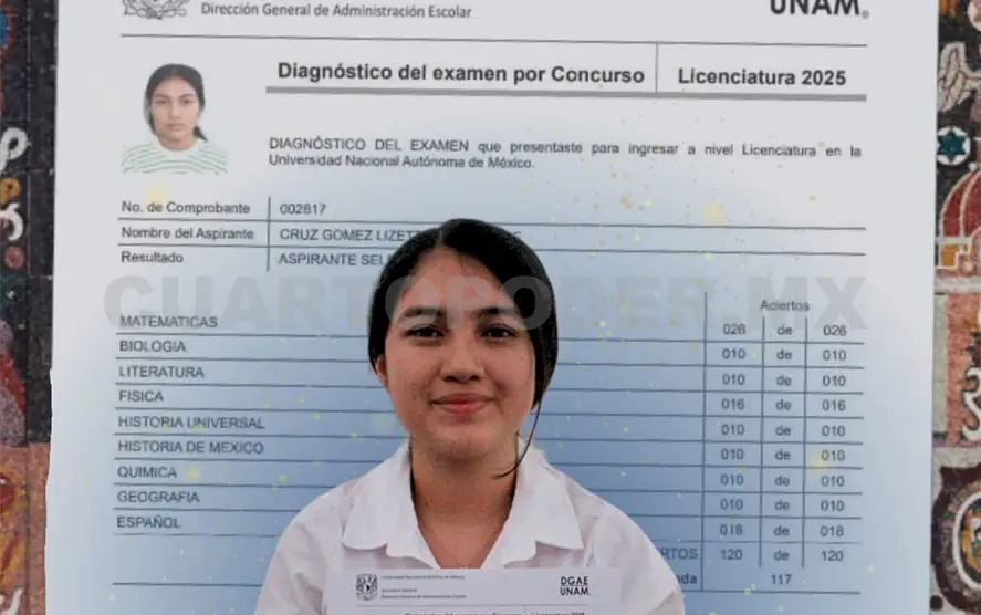 El nombre de Lizette Jacqueline Cruz Gómez, resonó a nivel nacional el pasado 17 de julio, cuando la UNAM dio a conocer que de los 48 mil 560 nuevos estudiantes que iniciarán el ciclo escolar 2025-2026, solo cuatro lograron el puntaje perfecto de ingreso: 120 aciertos, siendo ella una de las seleccionadas.