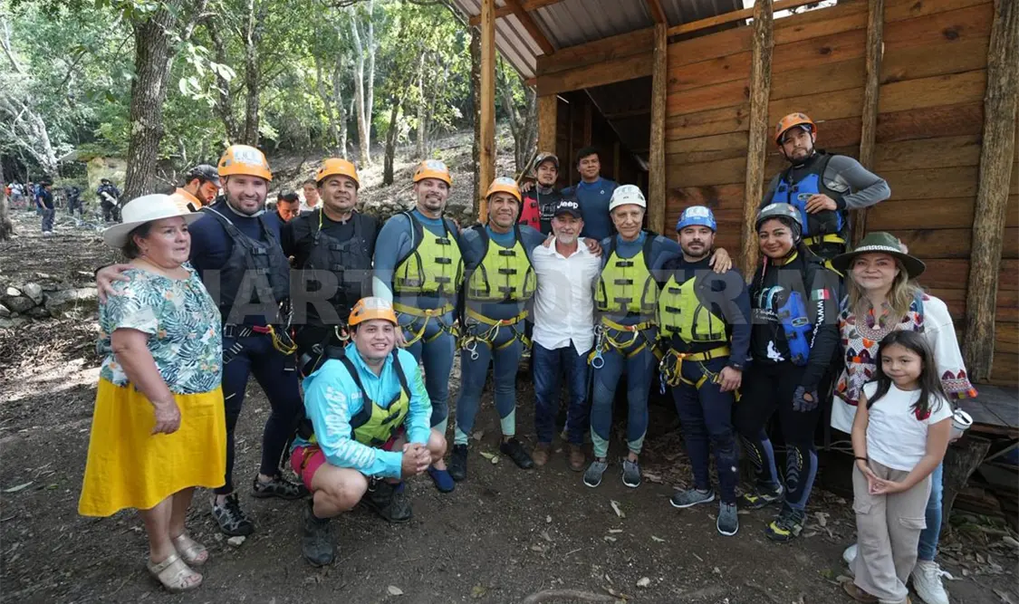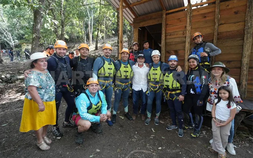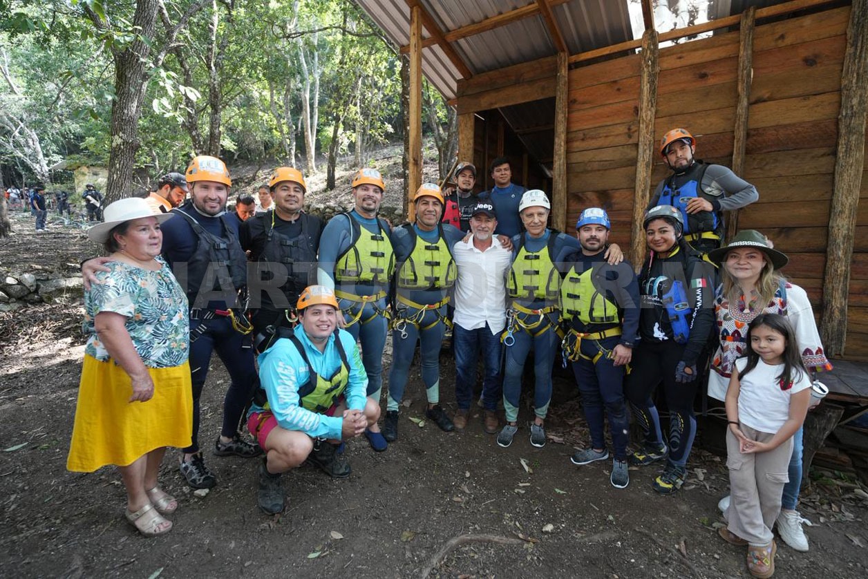“Estamos en Las Tres Tzimoleras, un lugar que próximamente será un área protegida, donde pueden estar en contacto con la naturaleza y practicar deportes de aventura, los invito a que conozcan este lugar; hoy Chiapas es un lugar seguro y con paz”, declaró.