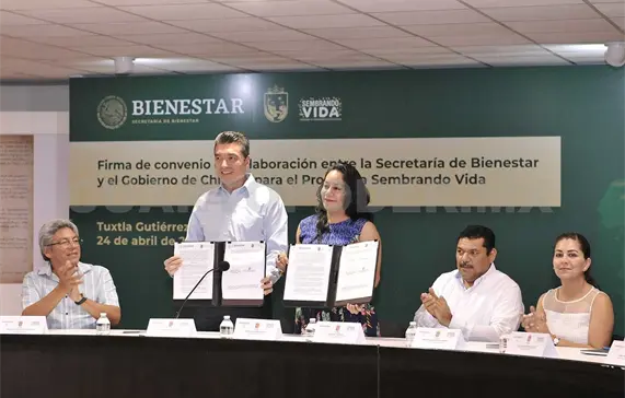Durante la firma del convenio entre el Gobierno de Chiapas y la Secretaría de Bienestar, respecto a la operación de esta estrategia que pretende preservar el patrimonio natural y rescatar el campo, el mandatario reiteró el compromiso de su administración de contribuir para sacar adelante este proyecto que encabeza el presidente de México, Andrés Manuel López Obrador.