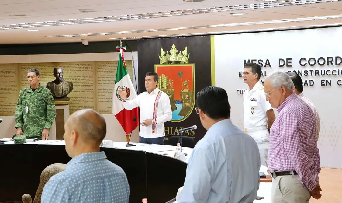 Durante la Mesa de Coordinación Estatal para la Construcción de la Paz y la Seguridad, el gobernador Rutilio Escandón Cadenas subrayó que, aunque ha iniciado la temporada de lluvias, en algunas regiones del territorio estatal continúan los incendios, por lo que insistió en el llamado a evitar la quema de pastizales y los incendios forestales, porque estas malas prácticas ponen en peligro a la población.