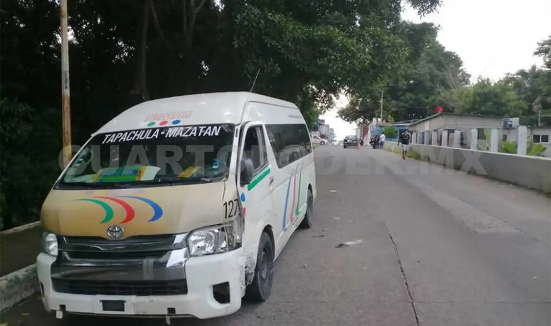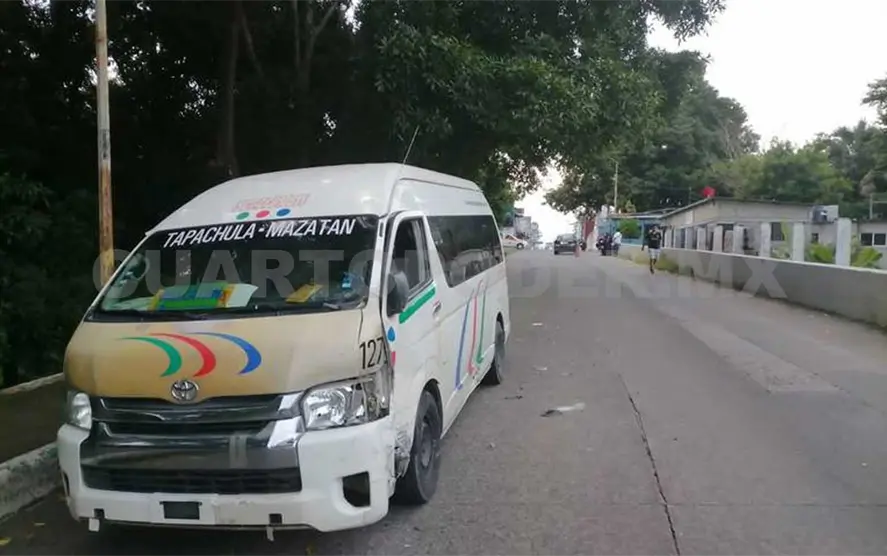 Los hechos se suscitaron sobre la 8ª calle Poniente, a la altura de la “Curva de la muerte”, resultando también con varias afectaciones la unidad Toyota Hiace, que tiene como ruta Tapachula-Mazatán, número económico 127 y que era conducida por Rafael “N”, la cual circulaba de oriente a poniente sobre la octava.