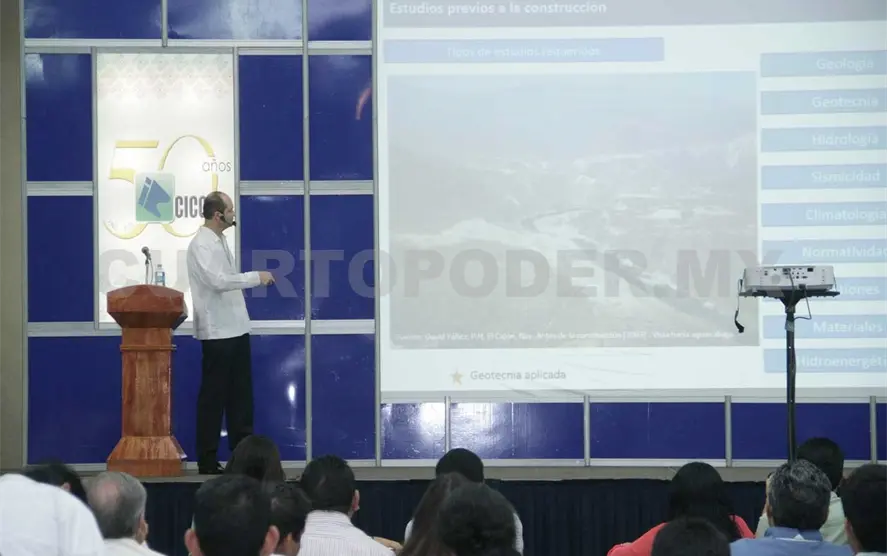 El Congreso Internacional del Cincuentenario del Colegio de Ingenieros Civiles de Chiapas (CICCH), fue formalmente clausurado la tarde de ayer con la ponencia titulada «Geotecnia aplicada al diseño y construcción de presas».