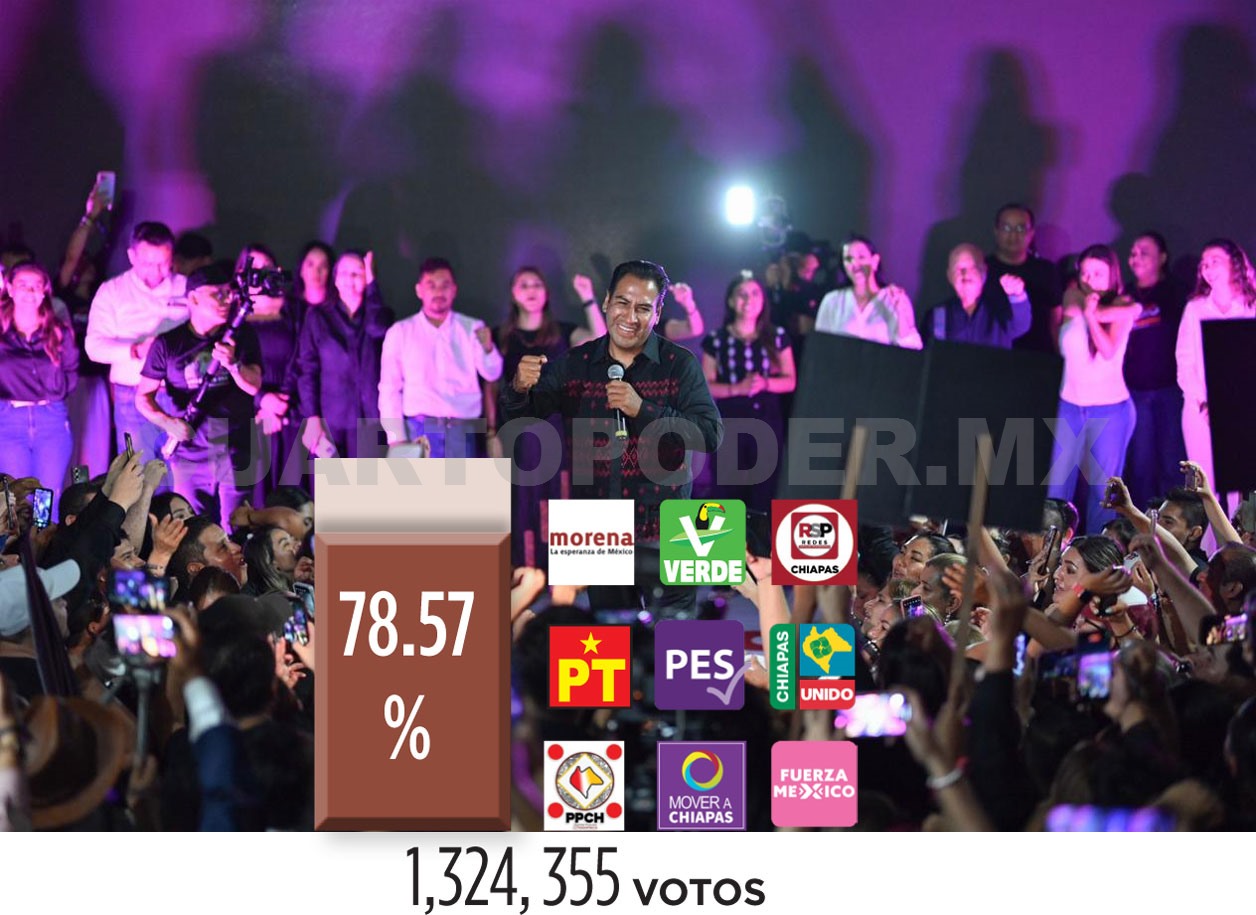Al cierre del Programa de Resultados Electorales Preliminares (PREP) del Instituto de Elecciones y Participación Ciudadana (IEPC) se confirmó la amplia ventaja de Eduardo Ramírez Aguilar frente a sus dos competidoras al gobierno de Chiapas. Además muestra la preferencias en alcaldías de mayor importancia