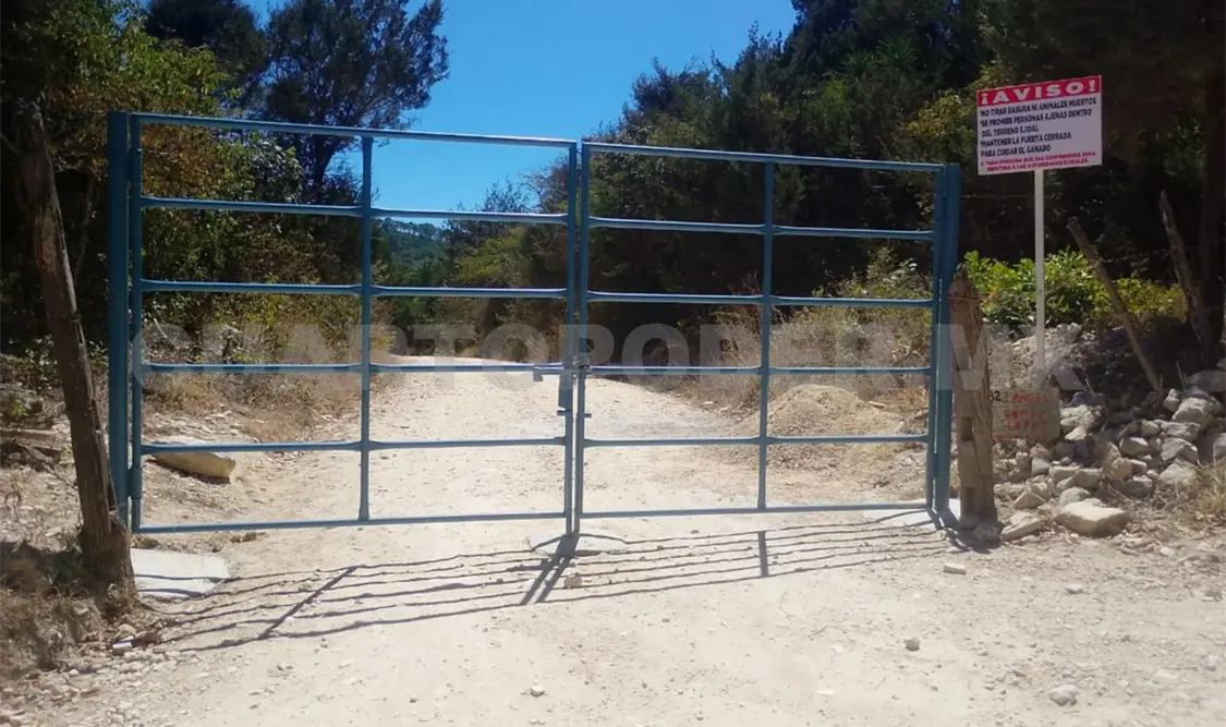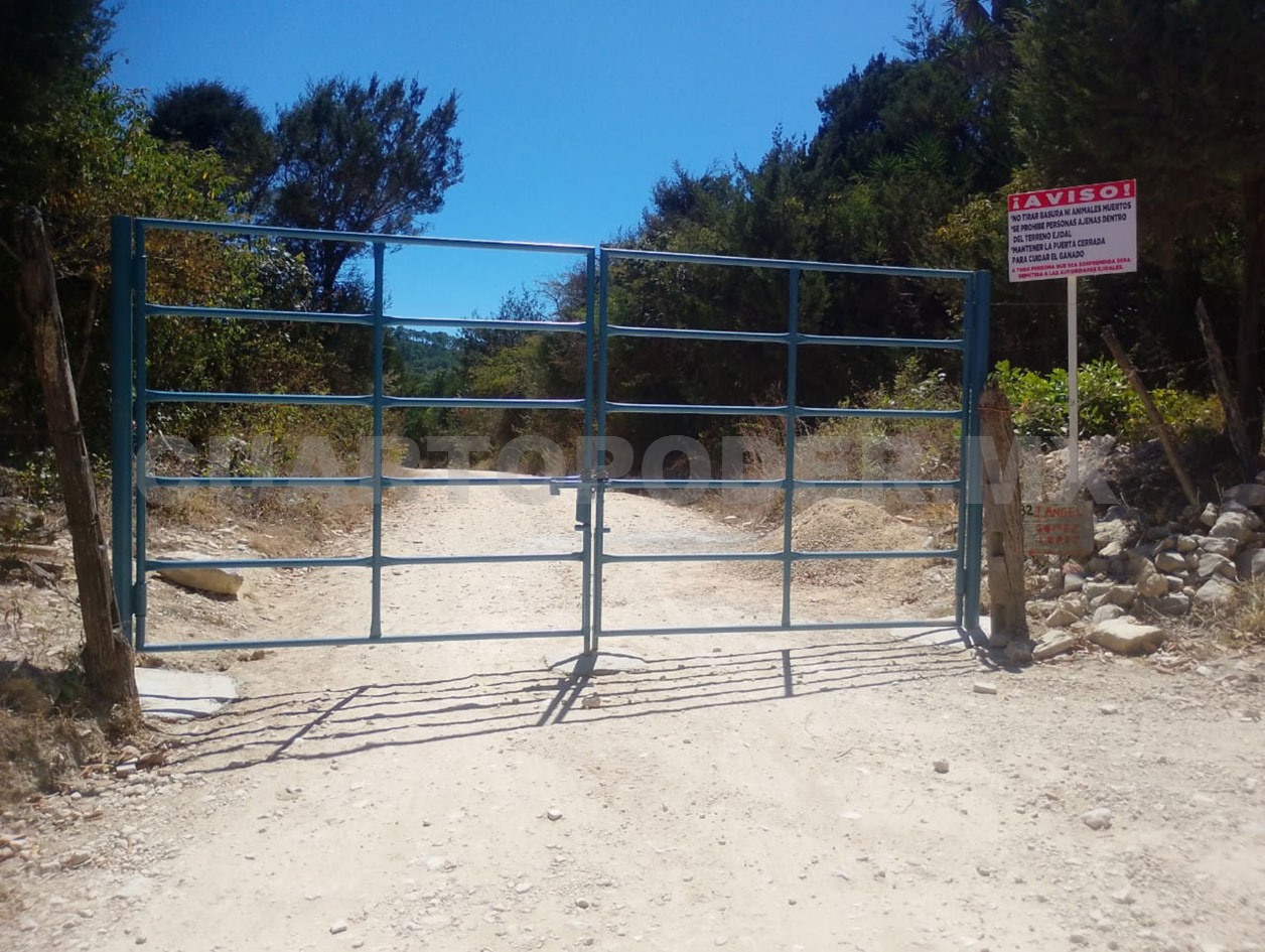 De acuerdo a versiones, desde hace cuatro días los propietarios de un predio perteneciente al ejido Francisco Sarabia colocaron un portón de metal en los límites y sobre la carretera de terracería, pero ayer lo cerraron con cadena y candado para impedir la circulación vehicular.