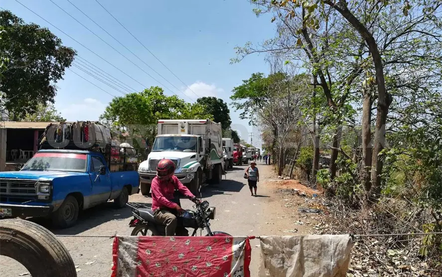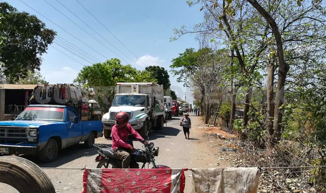 Los inconformes amarraron un cable de acero a postes de cada lado y pusieron una llanta, como señal de que no podían pasar los camiones cargados de basura de Tapachula, Mazatán, Huehuetán y Cacahoatán, que tiran sus desperdicios en ese lugar.