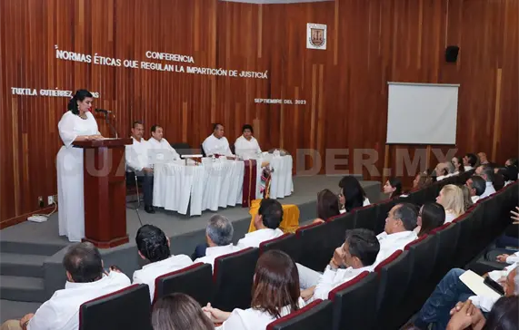 En el marco del cierre de actividades de la Semana de la Ética Judicial y la Campaña Justicia Con Valor, el Poder Judicial del Estado de Chiapas, que encabeza el magistrado presidente del Tribunal Superior de Justicia y Consejo de la Judicatura del Estado, Guillermo Ramos Pérez, realizó la conferencia magistral “Normas Éticas que Regulan la Impartición de Justicia”, disertada por el magistrado de Circuito del Tribunal Colegiado en materia del Trabajo del Vigésimo Circuito, Luis Arturo Palacio Zurita.