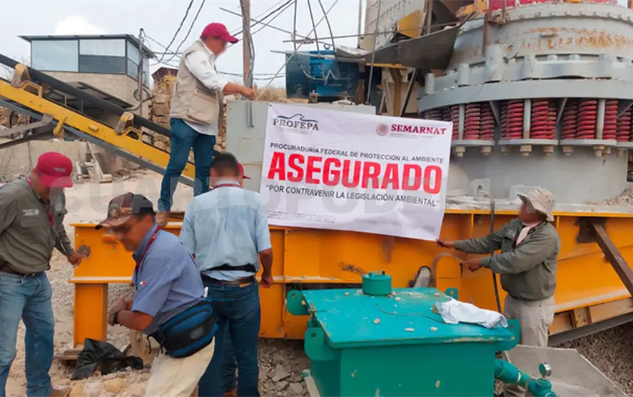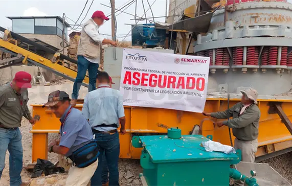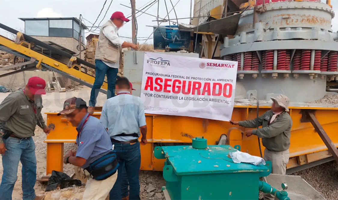 Por lo anterior se impuso la clausura temporal total del banco de material y se realizó un aseguramiento precautorio de un equipo de trituración, dos excavadoras de oruga, un vehículo tipo volteo, un generador de corriente de diésel y una retroexcavadora.