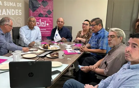 Para fortalecer la pluralidad de ideas que promueve el gobernador electo de Chiapas, Eduardo Ramírez, empresarios afiliados a la Coparmex, encabezados por su presidenta Lorena Domínguez de la Torre y directivos de la asociación civil de México, se reunieron con el coordinador general de los Diálogos por la Transformación, Juan Carlos Gómez Aranda e integrantes de su equipo de trabajo, para intercambiar información económica y particularmente del Índice de Desarrollo Democrático, lo cual contribuirá al diseño de estrategias para la generación de empleo y mejores oportunidades para el estado.