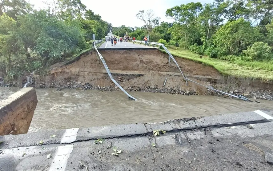 Las comunidades Las Palmas, Los Olivos, 5 de Febrero, Nueva Libertad, Progreso y El Paraíso, quedaron incomunicados debido al colapso de los puentes colgantes en la zona.