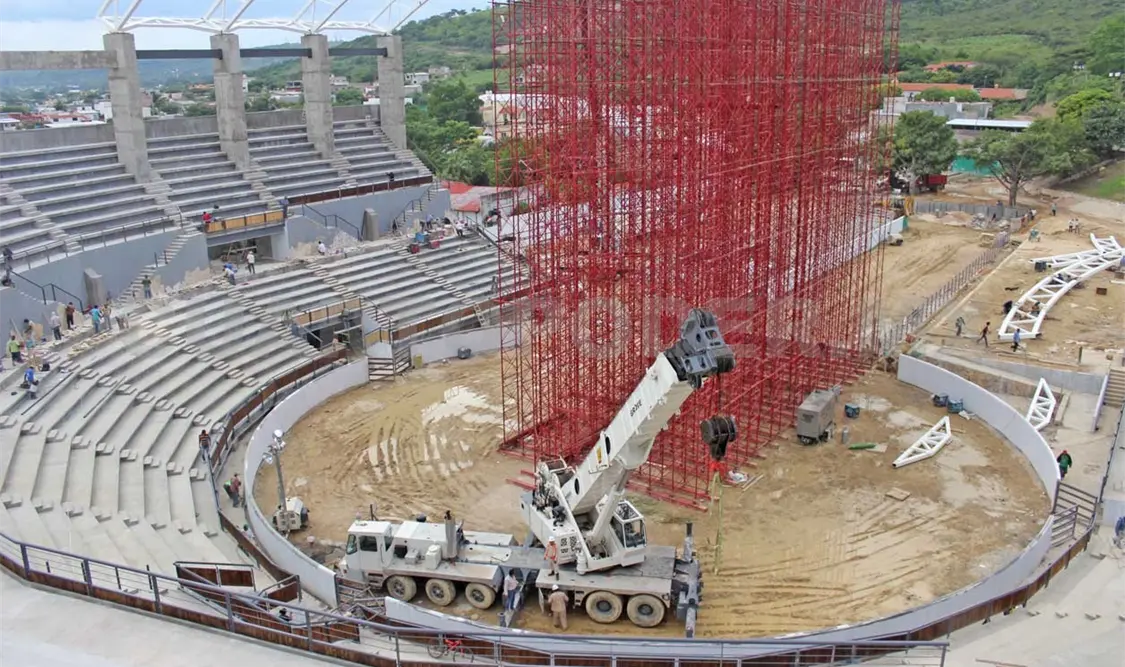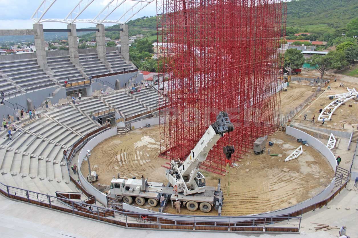 “Se trata de una obra de grandes dimensiones que integra procesos constructivos modernos, privilegiando una correcta visibilidad y correcta acústica, cobijadas por un techado de primer mundo”, expresó.