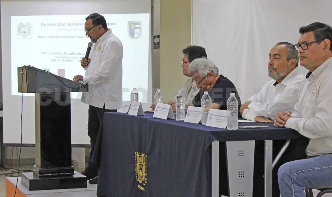 Arrancaron las actividades de la 3a Jornada Académica Internacional de Arquitectura y Urbanismo en la Facultad de Arquitectura de la Universidad Autónoma de Chiapas (Unach), donde se expondrán y compartirán temas emergentes en la investigación arquitectónica y se forjará la vinculación con la Universidad Nacional Santiago Antúnez de Mayo (Unasam) de Perú.