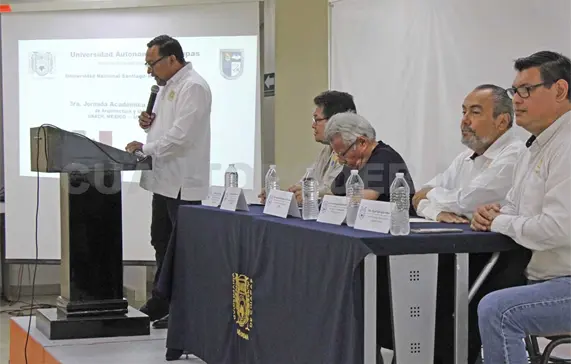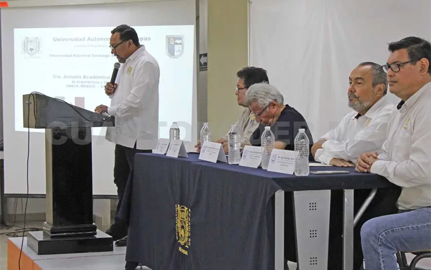 El director de la Facultad de Arquitectura de la Unach, Marco Antonio Moreno Domínguez, expuso en las palabras de inauguración que se trata de “una jordana ardua”, una semana de actividades donde docentes, investigadores y alumnos intervendrán con sus experiencias y profesionalismo en las ramas de la arquitectura y urbanismo.