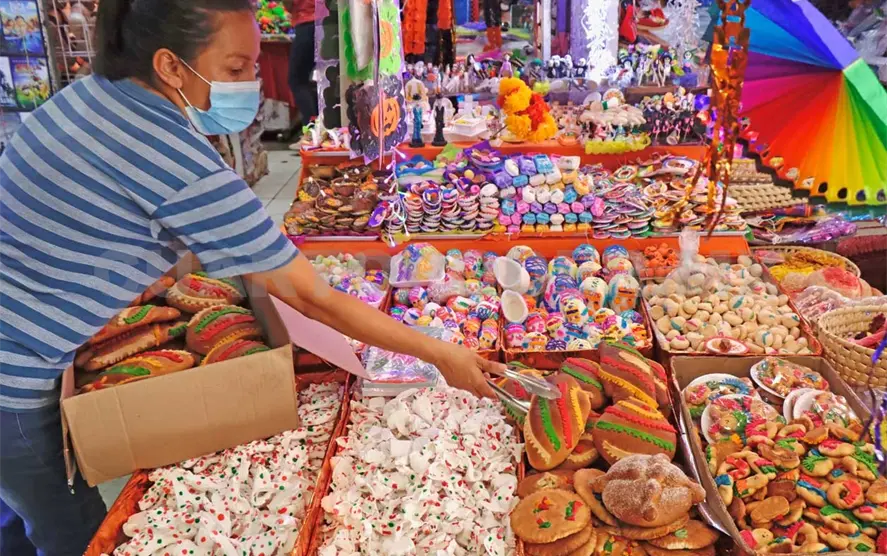 “La demanda más intensa de estos dulces inició a partir del 10 de octubre, sin embargo, muchos compañeros decidieron instalarse desde antes para obtener ganancias; los costos no aumentaron mucho a excepción de los dulces debido al alza del precio de azúcar”, comenta la locataria.