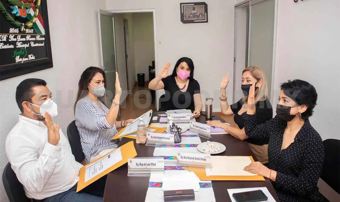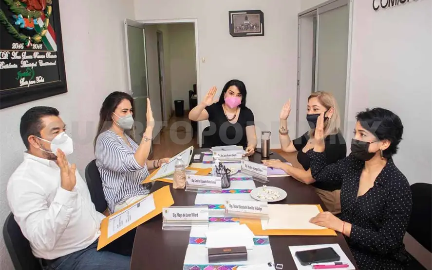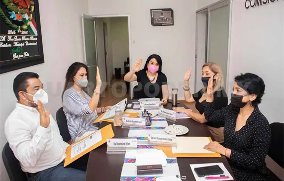 Las diputadas y diputado integrantes de la Comisión de Vigilancia de la sexagésima séptima Legislatura del Congreso del Estado, Ana Laura Romero Basurto (presidenta), Carolina Elizabeth Sohlé Gómez (vicepresidenta), Haydeé Ocampo Olvera (secretaria), Rosa Elizabeth Bonilla Hidalgo (vocal) y Maya de León Villard (vocal), sostuvieron una reunión de trabajo para analizar y deliberar la lista de las cuatro candidatas y candidatos que serán propuestos para integrar la Comisión de Selección del Sistema Anticorrupción del Estado de Chiapas.