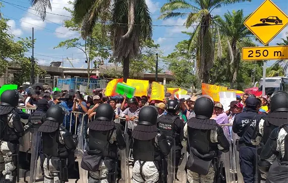 Sin embargo, un contingente de antimotines de la Secretaría de SSyPC, así como de la Guardia Nacional, los frenaron justo en la calzada Lázaro Cárdenas, en la colonia Pakalná, donde cercaron con vallas metálicas.