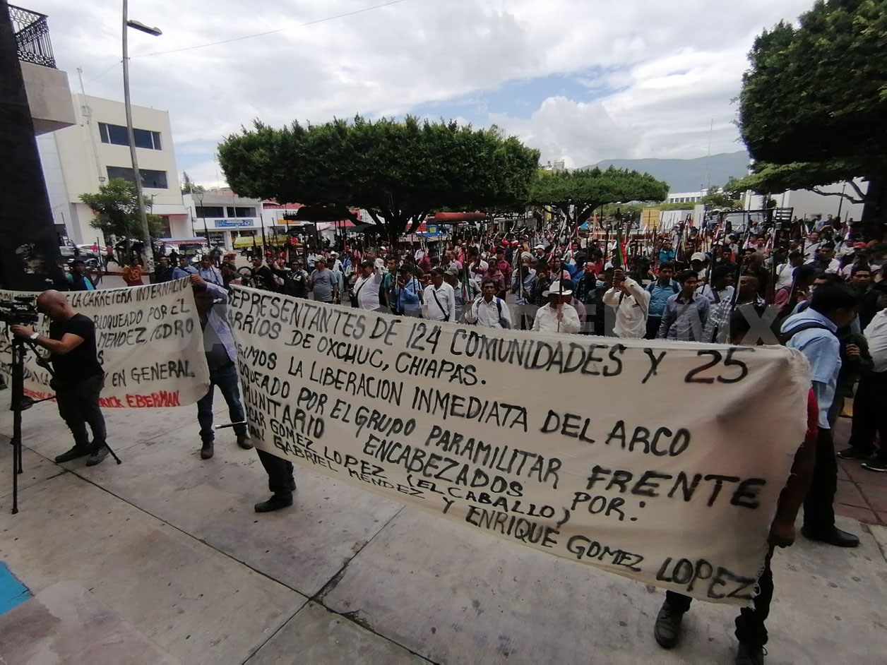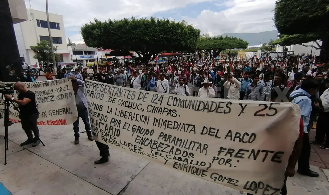 Representantes de 124 comunidades del municipio de Oxchuc arribaron a la capital chiapaneca para mostrar su apoyo al Concejo Municipal y exigir la aplicación del Estado de derecho para desalojar el bloqueo, que lleva dos meses afectando a la población.