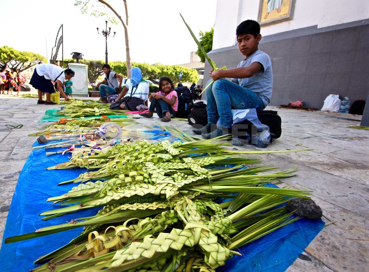 A las afueras del templo religioso, un grupo de artesanos provenientes de Aguacatenango, municipio de Venustiano Carranza, se colocó en diversos puntos con la palma de cera (Ceroxylon quindiuense) y trigo, para la elaboración y venta de ramos, cruces y otros productos.