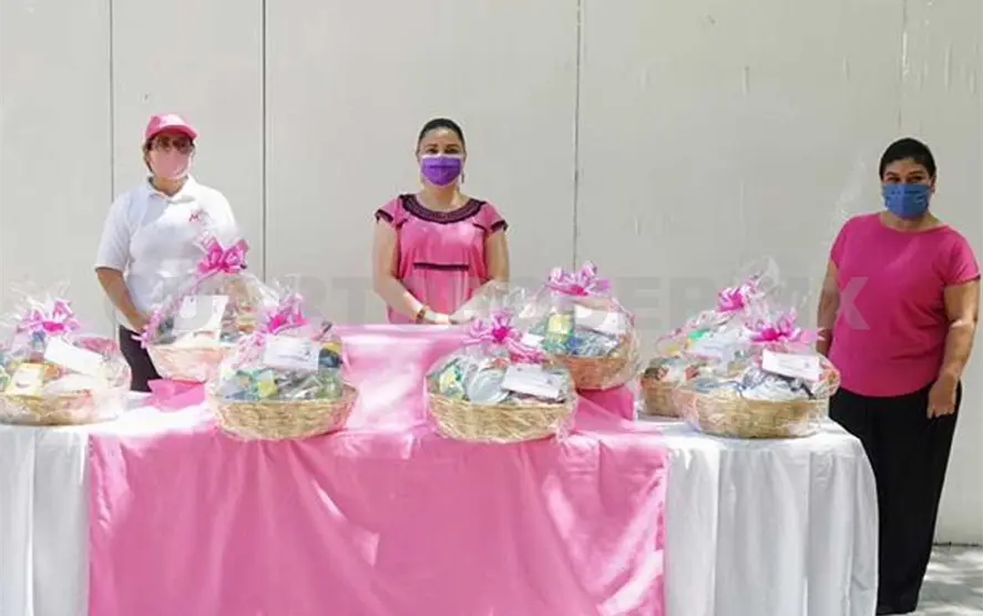 En el marco de la réplica del Día Rosa, con el que de forma solidaria se suma a la lucha contra el cáncer de mama, la secretaria de Bienestar de Chiapas, Adriana Grajales Gómez, se reunió con mujeres que padecen esta enfermedad y les hizo entrega de paquetes de insumos para su beneficio.