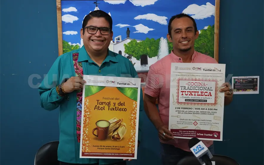 Juan Carlos Salazar, director del Instituto Tuxtleco de Arte y Cultura (ITAC), informó que hoy jueves 30 de enero, se llevará a cabo el Festival del Tamal y del Atol Tuxtleco, mientras que para el día 2 de febrero se realizará el Festival de la Cocina Tradicional Tuxtleca.