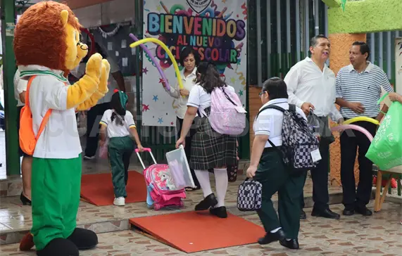 En auto, colectivo, caminando, las niñas y niños llegaban cargando sus enormes mochilas. Desde afuera se escuchaba una música alegre para recibirlos, junto a la botarga de la mascota oficial de la escuela, un león. Algunos papás y mamás se tomaban la selfie y grababan a sus pequeños al ingresar.