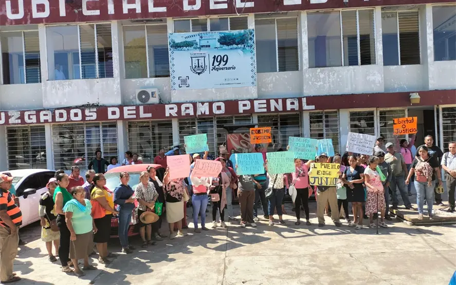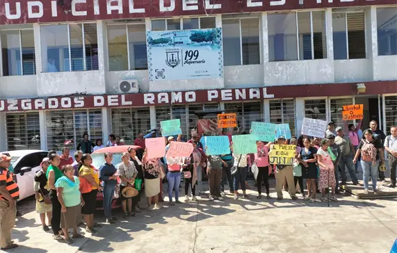 Con una manifestación frente a los juzgados del ramo Penal en el Centro de Readaptación Número 3 de Tapachula, habitantes del cantón Nuevo Pumpuapa, municipio de Huixtla, pidieron la liberación de una adulta mayor que fue detenida presuntamente por un problema agrario.