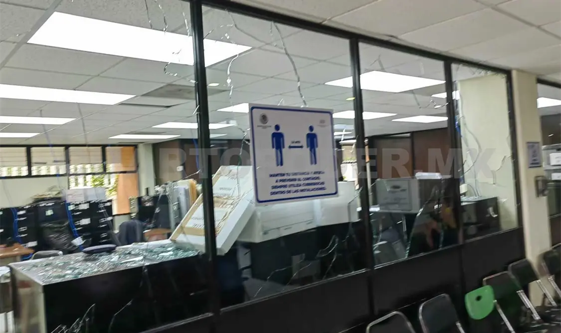 En el lugar, varios hombres encapuchados destruyeron con palos y piedras todo lo que encontraban a su paso, por lo que resultaron dañados equipos de cómputo, canceles y ventanas de vidrio; además de dejar algunas personas heridas que se encontraban haciendo trámites.