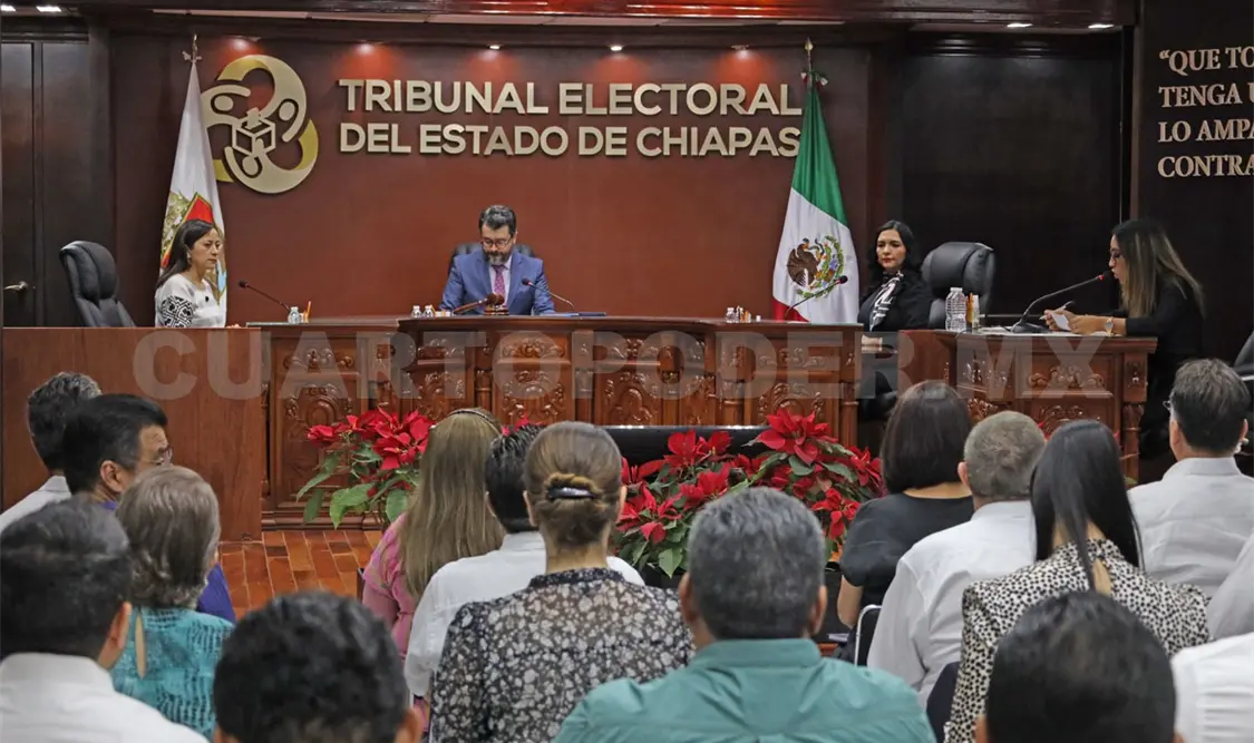 El Tribunal resolvió en su orden del día, los expedientes TEECH/JIN-M/048/2024 y su acumulado TEECH/JIN-M/052/2024; el magistrado Gilberto Bátiz García confirmó la validez de la elección impugnada por los partidos políticos Acción Nacional (PAN) y Revolucionario Institucional (PRI), respecto al triunfo reconocido a la planilla registrada por el partido político Movimiento de Regeneración Nacional (Morena).