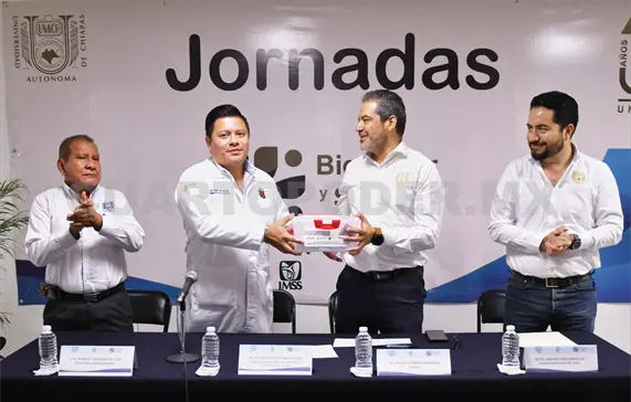 En el marco del inicio de la “Jornada de Salud Universitaria”, realizada en las instalaciones de la Biblioteca Central Universitaria y como parte de las acciones encaminadas a fomentar una cultura de salud y bienestar en los universitarios, el rector Carlos Faustino Natarén Nandayapa recibió de manos del coordinador estatal del VIH/SIDA/ITS de esa dependencia, Alejandro Rivera Marroquín, el primero de 42 botiquines que serán en enviados a igual número de unidades académicas de la Unach.