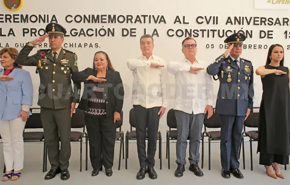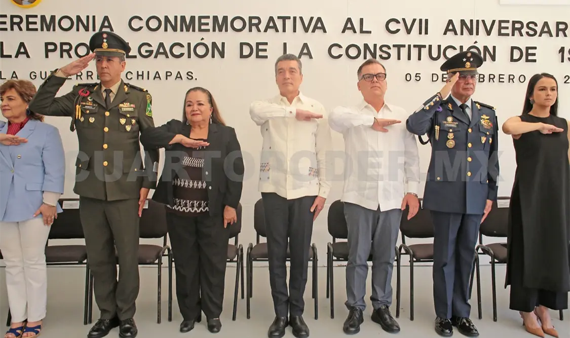 “Estamos viviendo tiempos de un gran movimiento, de una verdadera sacudida de las conciencias donde esta carta magna sigue jugando el papel principal. ¡Viva la Constitución Política de los Estados Unidos Mexicanos!, ¡viva México!, ¡viva Chiapas!, ¡viva el pueblo!, ¡viva la división de poderes!, ¡viva todo lo que hace la fortaleza de las mexicanas y los mexicanos!”, expresó.