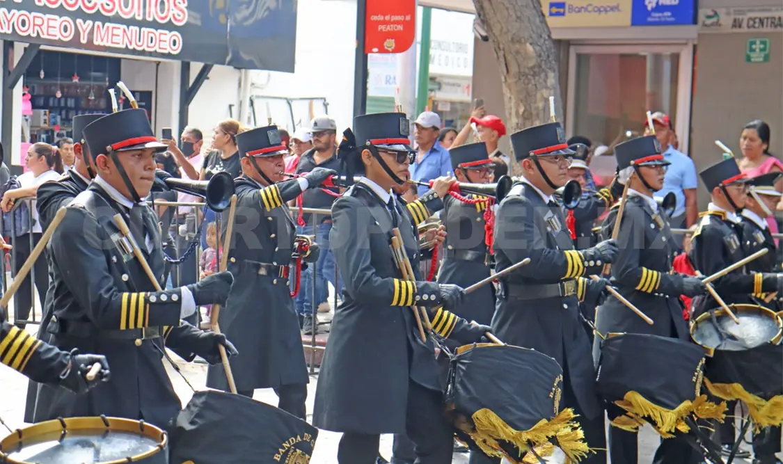 En la ciudad, desfilaron elementos del Ejército Mexicano, Fuerza Aérea, Guardia Nacional, asociaciones cívicas, deportivas y culturales, con un efectivo de nueve banderas de gaza, 394 integrantes de las Fuerzas Armadas, mil 274 civiles, 70 charros, 90 caballos, una banda de música, 27 vehículos, 14 carros temáticos, 20 motocicletas, una lancha de rescate y 15 canes.