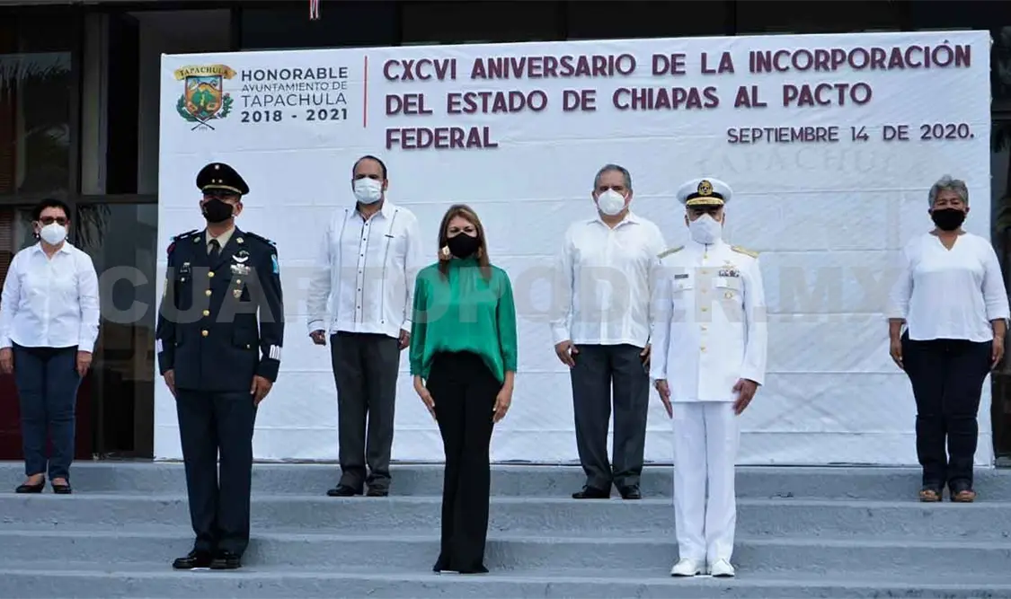 Con una emotiva ceremonia cívica realizada en la explanada externa del Palacio Municipal, el Ayuntamiento de Tapachula conmemoró el CXCVI aniversario de la Federación de Chiapas a México, en un evento que rememoró un acontecimiento histórico que permitió por voluntad propia, unir el destino de los chiapanecos al Estado mexicano.