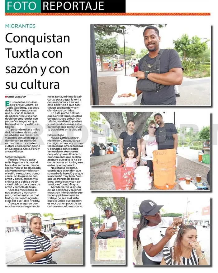 En una de las esquinas del Parque Central de Tuxtla Gutiérrez, decenas de familias venezolanas que buscan la manera de obtener recursos han decidido emprender con pequeños negocios que llevan el sazón y estilo caribeño.