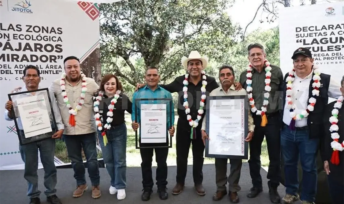 El gobernador Eduardo Ramírez Aguilar encabezó la firma del Decreto de Declaratoria de Áreas Naturales Protegidas (ANP) con la categoría de Zona Sujeta a Conservación Ecológica para los territorios Laguna de Pájaros Azules y El Mirador, y entregó el certificado de Área Destinada Voluntariamente a la Conservación (ADVC) del Área Natural Protegida La Cueva de Tepezcuintle, en el municipio de Jitotol.