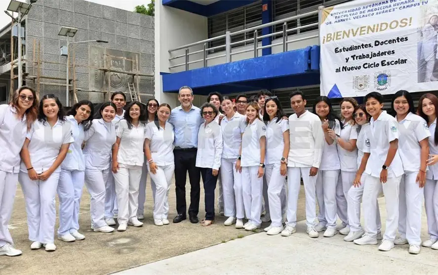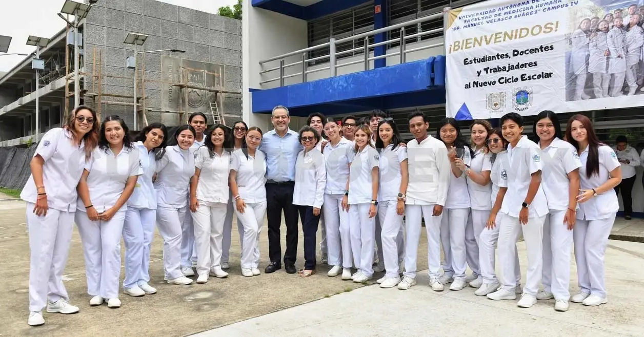 En el marco de su gira de trabajo por la ciudad de Tapachula, Natarén Nandayapa verificó los espacios que ya fueron acondicionados para atender este semestre a la comunidad de la Facultad de Medicina Humana “Dr. Manuel Velasco Suárez”, Campus IV.