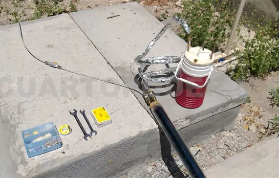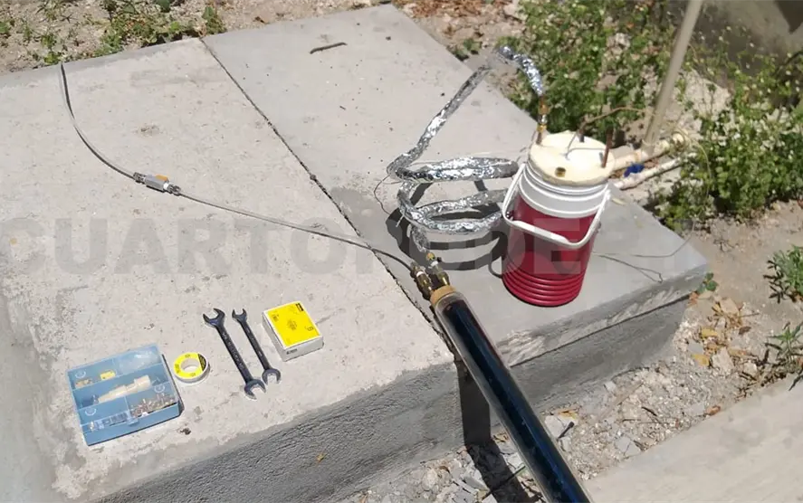Utiliza un sistema de aire a través de un compresor eléctrico, en el que manejaron un cierto flujo y presión que pasa sobre un tubo evacuado de un calentador solar convencional; por el tubo entra aire a temperatura ambiente y sale a cierta temperatura durante cierto tiempo.