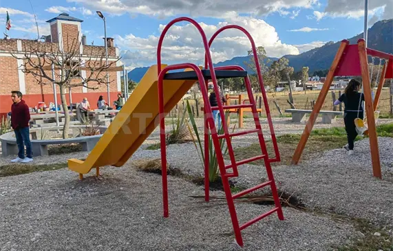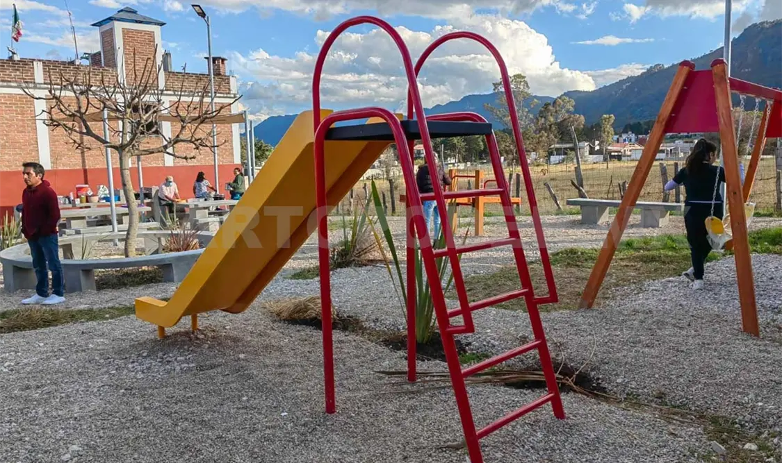 Este espacio público está conformado por juegos infantiles, luminarias solares y un centro de convivencia.