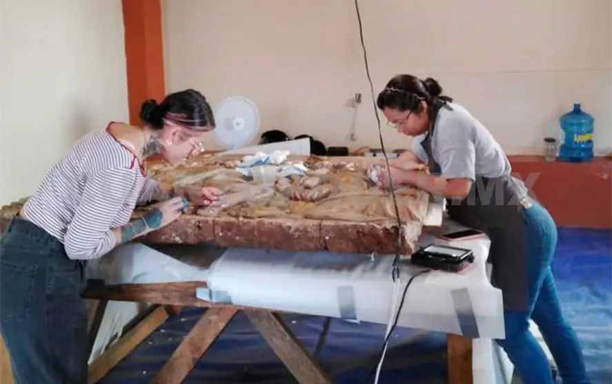 De acuerdo a Nayeli Pacheco y Silvia Vázquez, del Centro Chiapas del Instituto Nacional de Antropología e Historia (INAH), se mantienen avances en los trabajos de restauración del relieve “El Descendimiento de Jesús” del templo transformado en el siglo XIX al estilo neogótico.