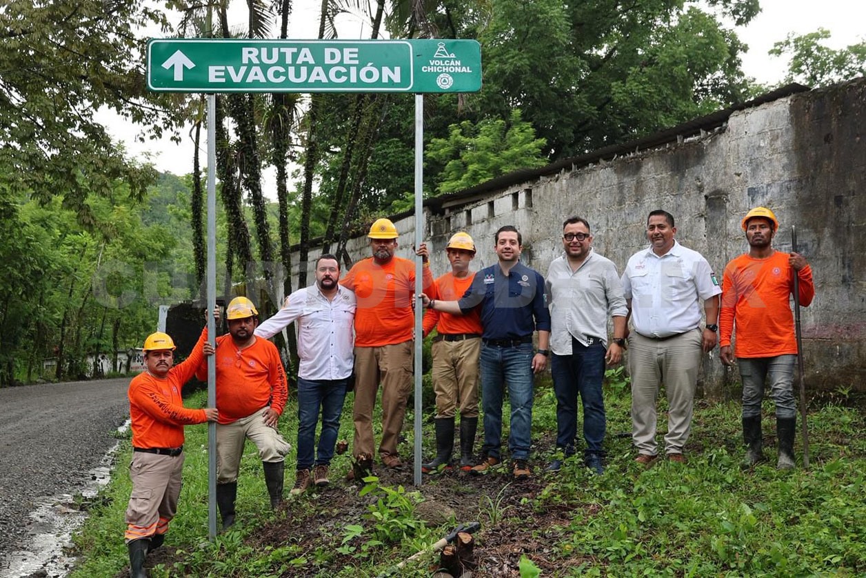 Como parte de las actividades preventivas, el secretario de Protección Civil de Chiapas, Mauricio Cordero Rodríguez, llevó a cabo la supervisión de señalamientos que fueron instalados para ubicar las 13 rutas de evacuación cercanas al volcán.