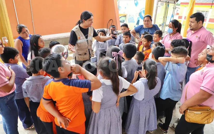 Durante el recorrido en las escuelas, estuvo presente La Caravana Kukay, la cual es un museo interactivo que recorre los municipios y localidades del estado, con la finalidad de difundir el conocimiento que permite fomentar la creatividad de la niñez chiapaneca.