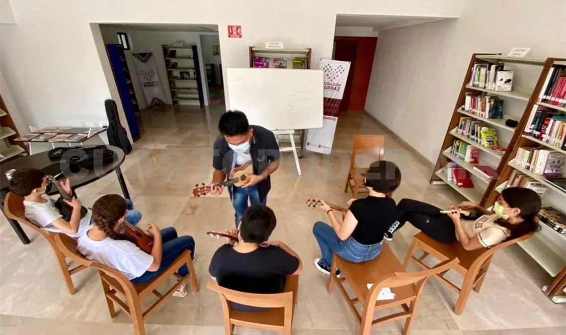 Por tanto, invitó a niños, jóvenes y adultos a inscribirse en los talleres artísticos y culturales que promueve el centro Corazón Borraz: ballet clásico, danzas españolas, break dance, “Ori Tahiti”, ajedrez, bordado tradicional zoque de Chiapas, piano, guitarra, piano, ukelele, dibujo y pintura y grabado.